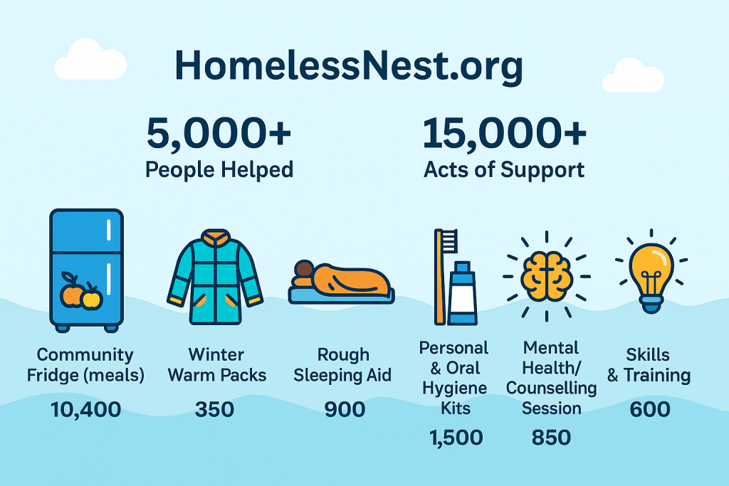 HomelessNest is a UK charity that helps people facing homelessness, housing insecurity, and family crisis. We provide grants, essential items, and support services that restore dignity, stability, and hope.